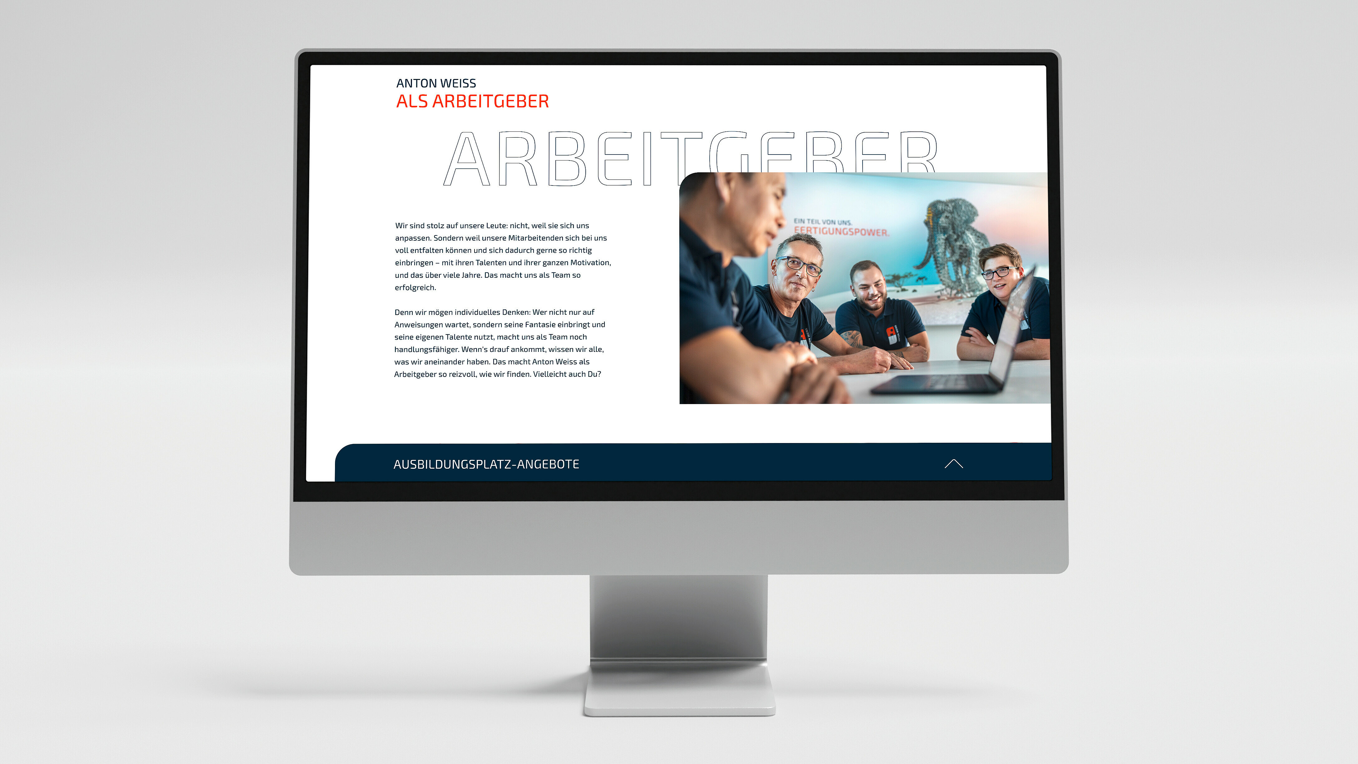 Wie gesagt: Eigentlich wurden wir angefragt, eine neue Website zu entwickeln. Dass die Anton Weiss GmbH mit uns die berühmte Extrameile gegangen ist, um sich wirklich einmal Gedanken dazu zu machen, was das Unternehmen eigentlich zu etwas Besonderem macht, das hat sich natürlich dann auch im "Leitmedium Internet" niedergeschlagen.