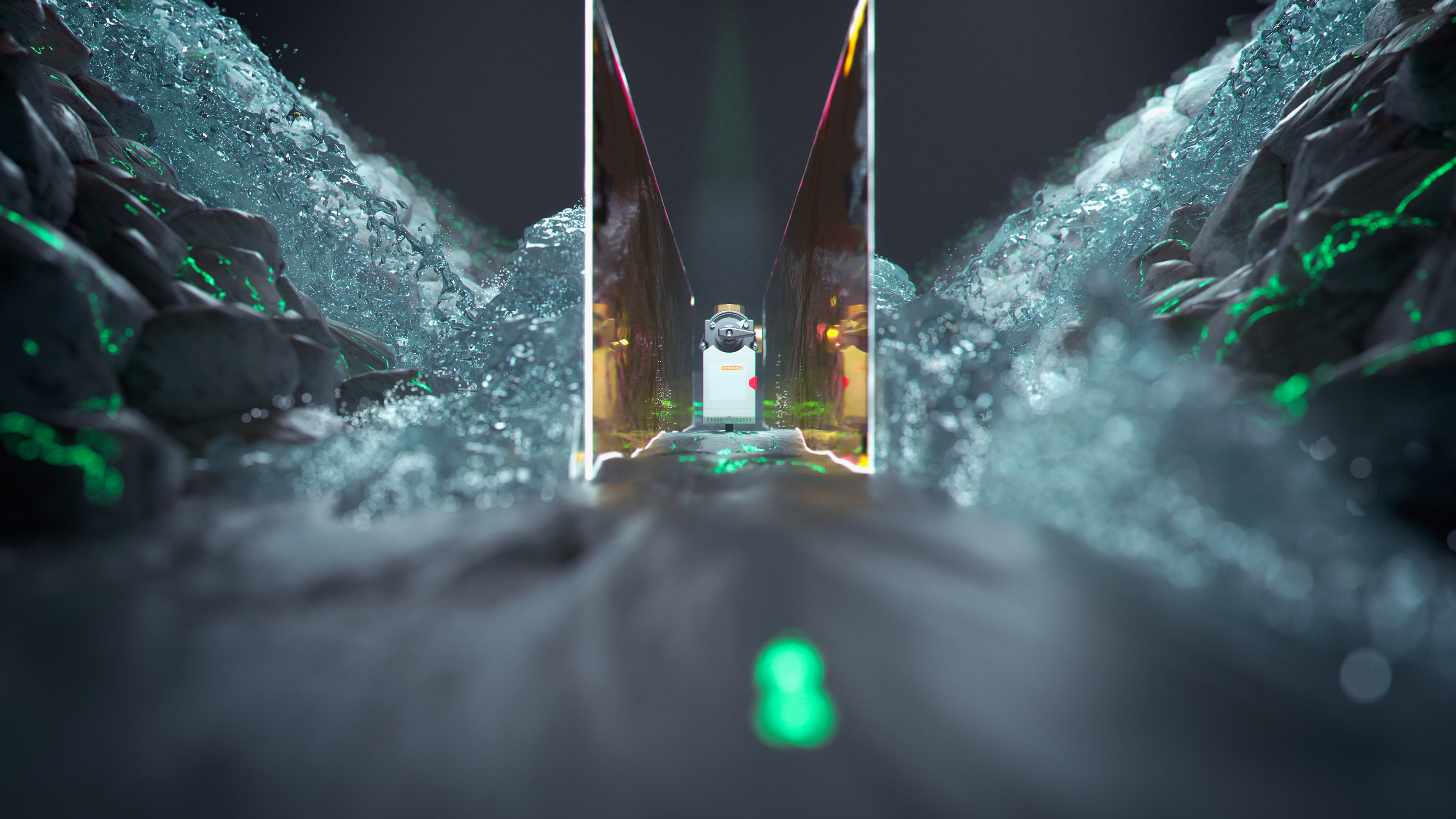 Die Gruner AG aus dem südwestdeutschen Wehingen ist mit rund 1.300 Mitarbeitern weltweit ein bedeutender Hersteller von elektrotechnischen Produkten für die Automobilindustrie und das Gebäude-Management. Die Messe ISH ist einer der wichtigsten Schauplätze, um die Kernbotschaft des Gruner-Unternehmensbereichs Stellantriebe einem internationalen Publikum zu vermitteln. In knapp einer Minute zeigt der Imagefilm durch anwendungsbezogene 3D-Animationswelten: Mit Gruner Stellantrieben sind die Elemente Luft, Wasser und Feuer sicher und zuverlässig unter Kontrolle.